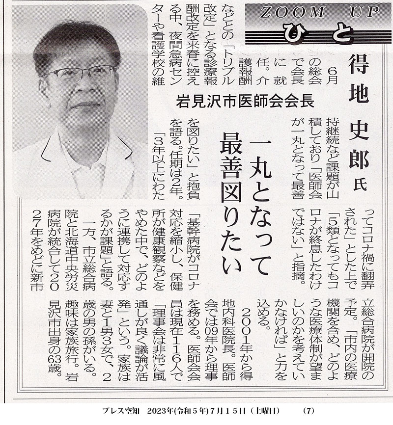 プレス空知に当院の院長が紹介されました。